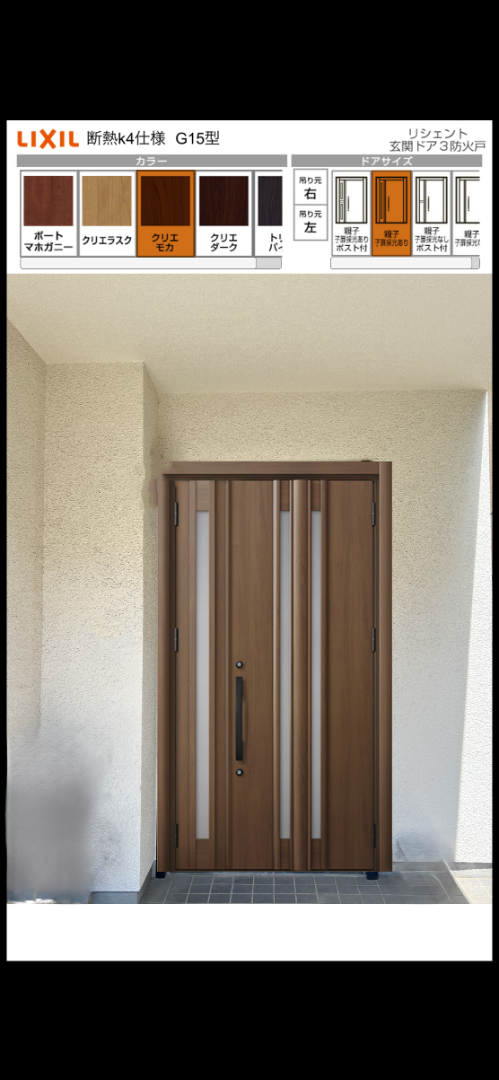 古くなった玄関ドアを、LIXILリシェントへ交換しました。
